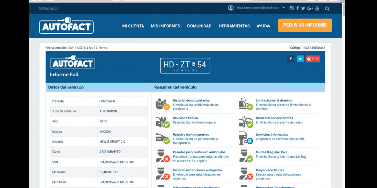 Estos son los datos que se encuentran en el Informe Autofact: